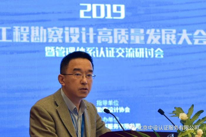 國家市場監督管理總局認證監管司付強處長代表認證行業的政府主管部門做了講話。付強處長強調,加強認證認可是提升供給質量推動高質量發展的迫切需要,是擴大消費形成強大國內市場的迫切需要,是強化市場監管提升監管水平的迫切需要。他還介紹說,2019年國家認證認可管理工作的重點是提升市場化、國際化、專業化、集約化、規范化。付強處長認為,認證認可工作的宗旨和目標是傳遞信任服務發展,當國家從高速發展轉向高質量發展的轉型時期,工程設計行業質量管理體系的分級認證,有利于提升認證認可工作水平。
